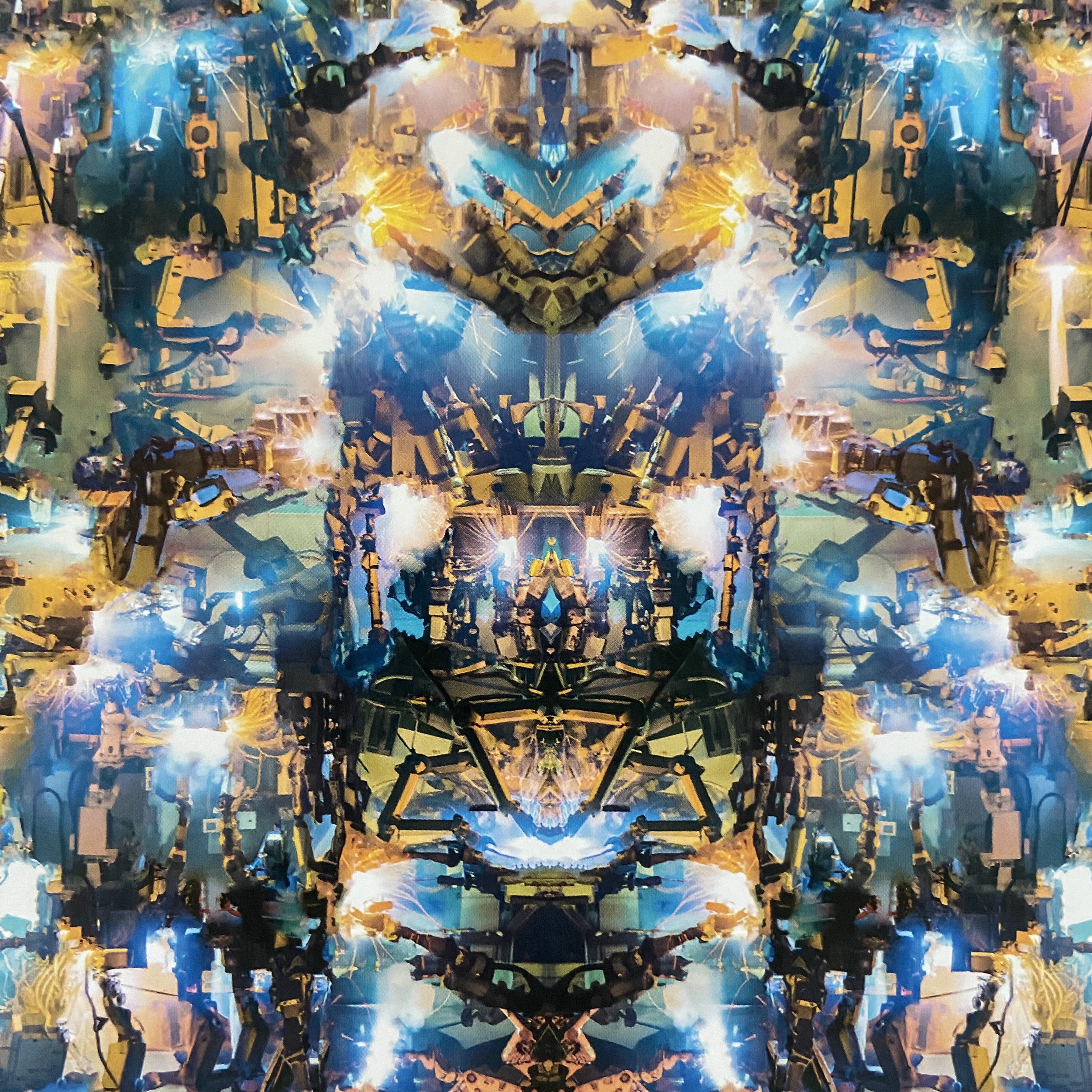 L’artista inserisce una serie di richieste testuali in un algoritmo di conversione del testo in immagini. L’intelligenza artificiale, che ormai dispone di una quantità impressionante di dati a cui attingere, non ha bisogno di una musa ispiratrice. Miliardi di fotografie fungono da punti di riferimento e guidano la macchina verso l’obiettivo di interpretare la richiesta. L’artista elabora poi l’esito dell’operazione e moltiplica le immagini ottenute, le giustappone e con un gioco di specchi e sdoppiamenti fa sì che l’immaginario creato risulti familiare ai nostri occhi. Questo gioco permette a chi osserva di attivare una parte del cervello che favorisce l’introspezione. Da ultimo, l’artista ha ideato di inserire vicino ai quadri dei suoni che creano un’atmosfera mistica nella sala. Si tratta di codici bisbigliati, usati dalle ricerche dell’intelligenza artificiale. L’opera fa pensare molto: l’intelligenza artificiale è il nuovo Creatore? Uomo e macchina: chi ha creato chi?